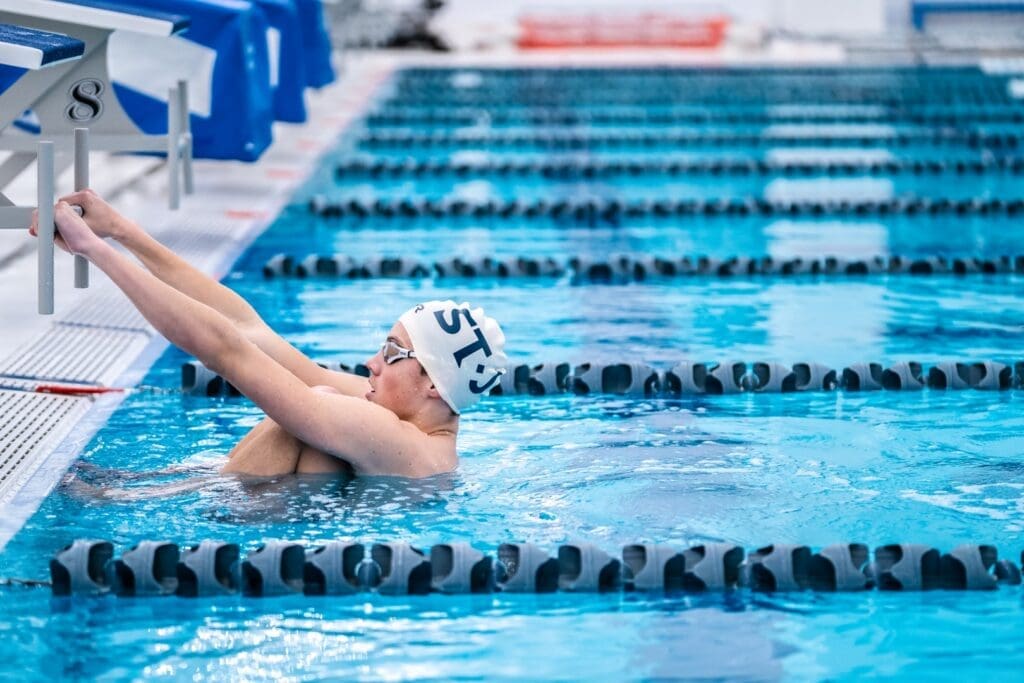 For swim meets all athletes will be required to arrive in a STJ Swimming shirt/sweatshirt. All athletes will also be required to wear their STJ Swim Cap to all practices and meets.